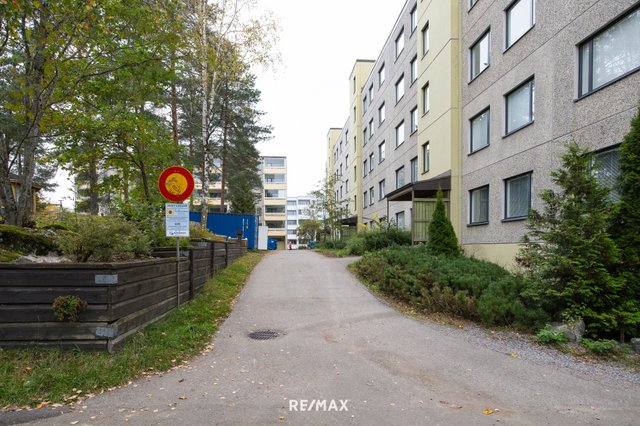 Sijainti on yksi tämän kodin parhaista puolista sillä urheilupuisto ja lenkkipolut alkavat lähes kotiovelta ja Sotungin ulkoilualueet löytyvät muutaman minuutin päästä. Kaupat, koulut ja päiväkodit ovat kaikki lähellä, ja Kehä III:lle sekä Lahdenväylälle pääsee nopeasti, mikä tekee liikkumisesta helppoa niin autolla kuin julkisilla.