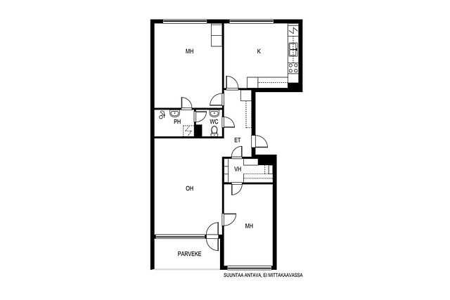 3h, k, pesutilat, vh, iso lasitettu parveke ( yht.järj. 3 H + K).