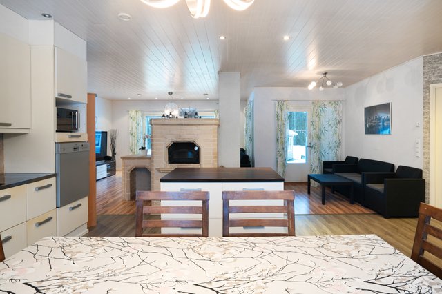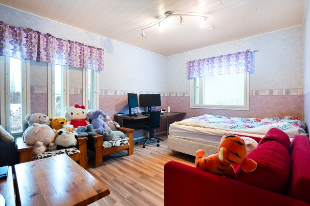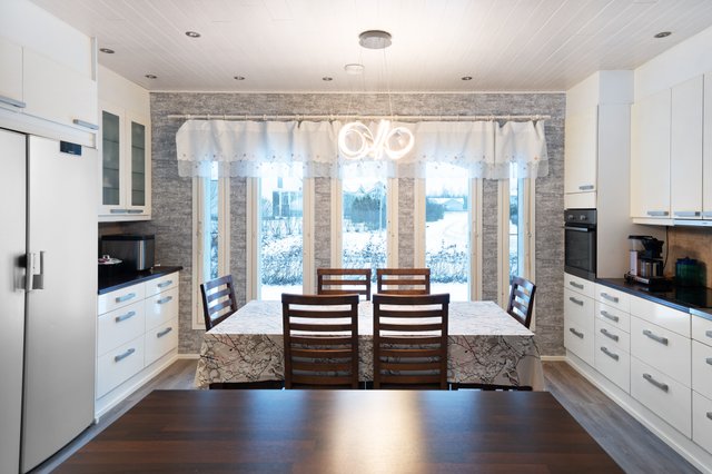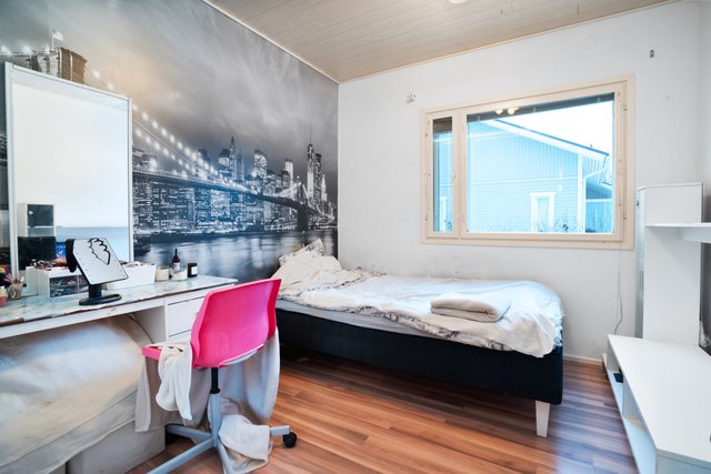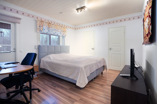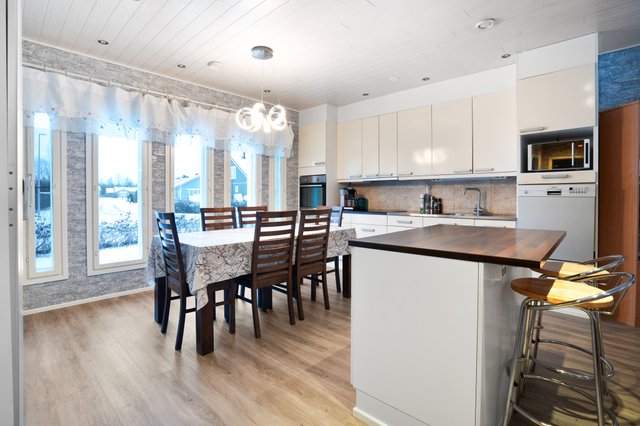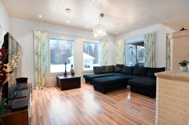 Kodissa on tilavat neljä makuuhuonetta, jotka tarjoavat runsaasti tilaa perheen jokaiselle jäsenelle. Olohuoneen laminaattilattia ja tapetoidut seinät luovat lämpimän tunnelman, ja keittiöstä löytyy kaikki tarvittavat varusteet. Kylpyhuoneen poreamme ja sauna tarjoavat rentouttavia hetkiä arjen keskellä.