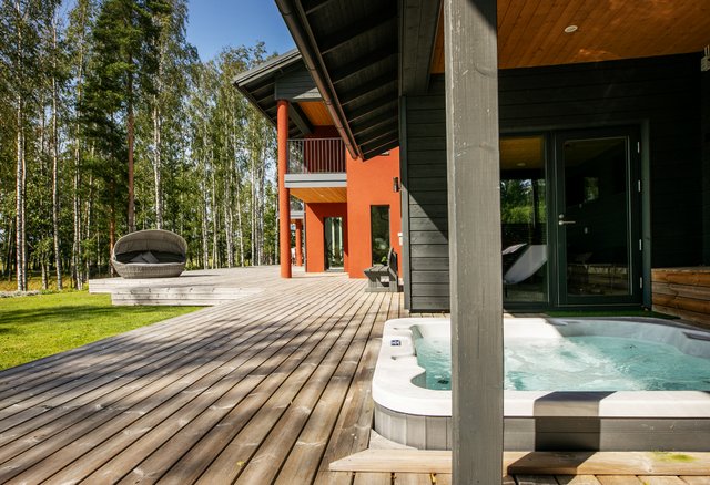 - Alakerrassa, yläkerrassa sekä saunarakennuksessa.