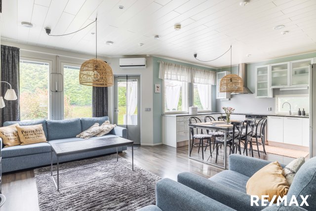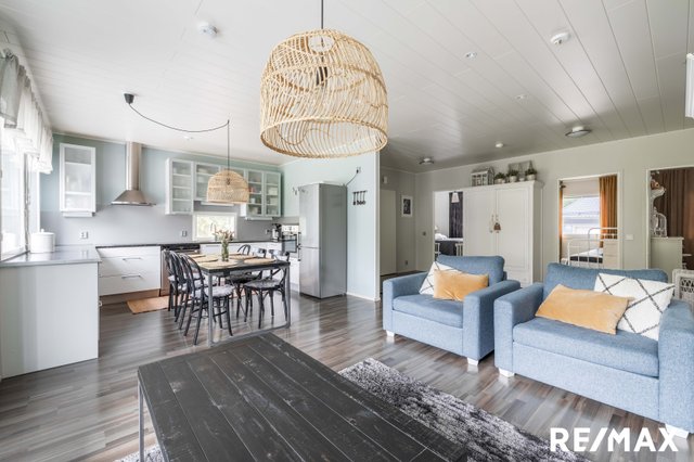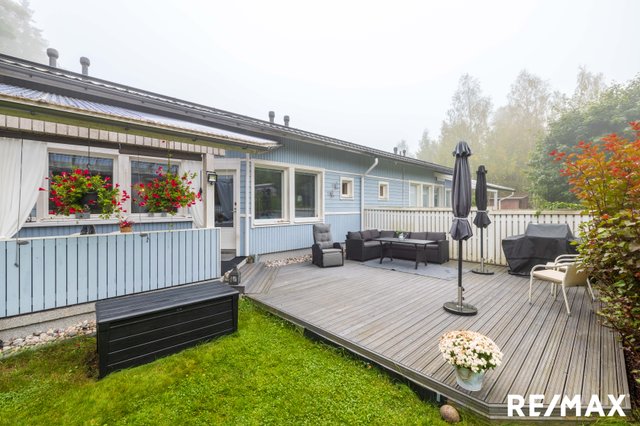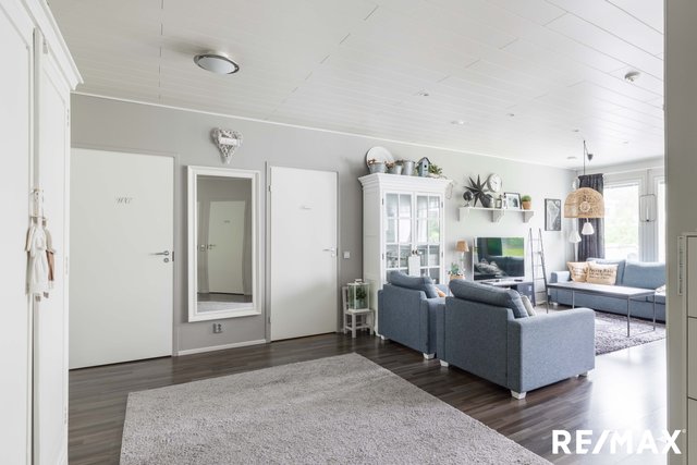 Tämä kaunis ja yksitasoinen, vuonna 2012 valmistunut paritalokoti Nurmijärven Herusissa tarjoaa rauhallista asumista luonnonläheisellä alueella. Kodin avara ja valoisa olohuone on täydellinen paikka rentoutumiseen, ja sieltä avautuu näkymä suojaisalle pihalle. Moderni keittiö, jossa on runsaasti luonnonvaloa, tekee ruoanlaitosta nautinnon.
