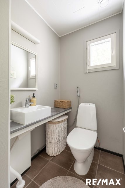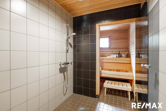 Kolme makuuhuonetta tarjoavat tilaa niin perheelle kuin vieraillekin. Kaksi erillistä wc:tä kylpyhuonetilojen lisäksi sekä kodinhoitohuone helpottavat arjen sujuvuutta. Tunnelmallinen sauna, jossa on ikkuna, kutsuu rentoutumaan pitkän päivän päätteeksi.
