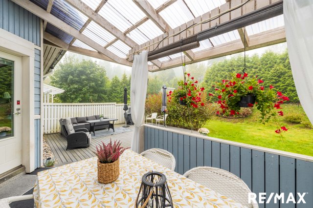 - Terassi hyvänkokoinen ja osittain katettu.