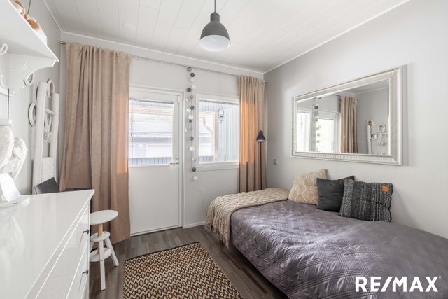 - Yhdestä makuuhuoneesta on kulku terassille.