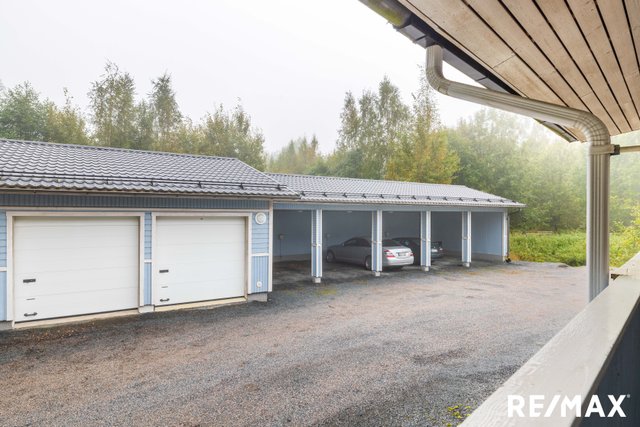 - Autot saa pysäköityä autotalliin sekä autokatokseen.