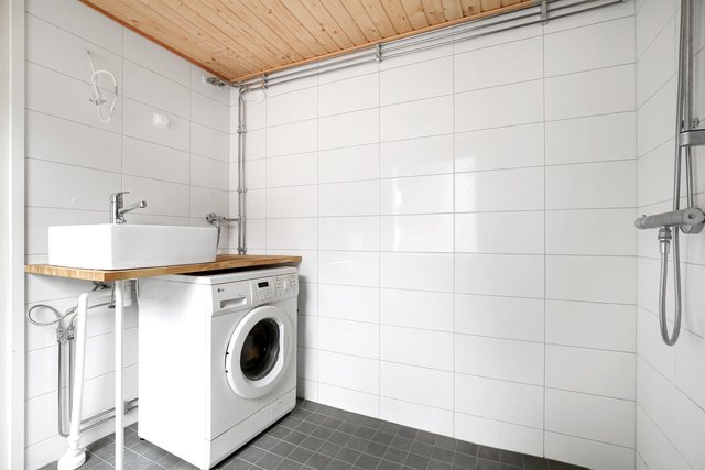 - Suihku, pesukoneliitäntä, lattialämmitys, ja pesuallas
