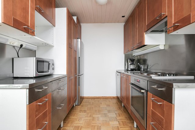 - Jääkaappipakastin, erillisuuni, liesituuletin, astianpesukone, ja liesi