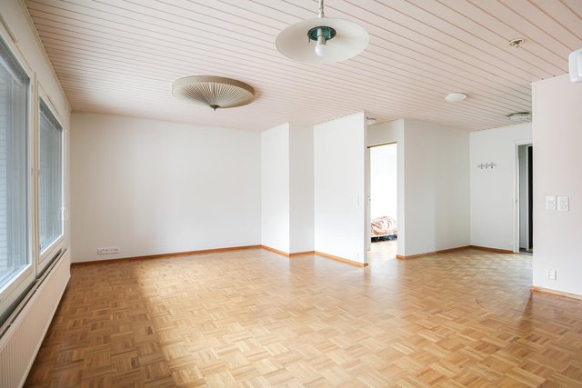 Kaksi makuuhuonetta, olohuone, keittiö, kph/sauna ja erillis WC.