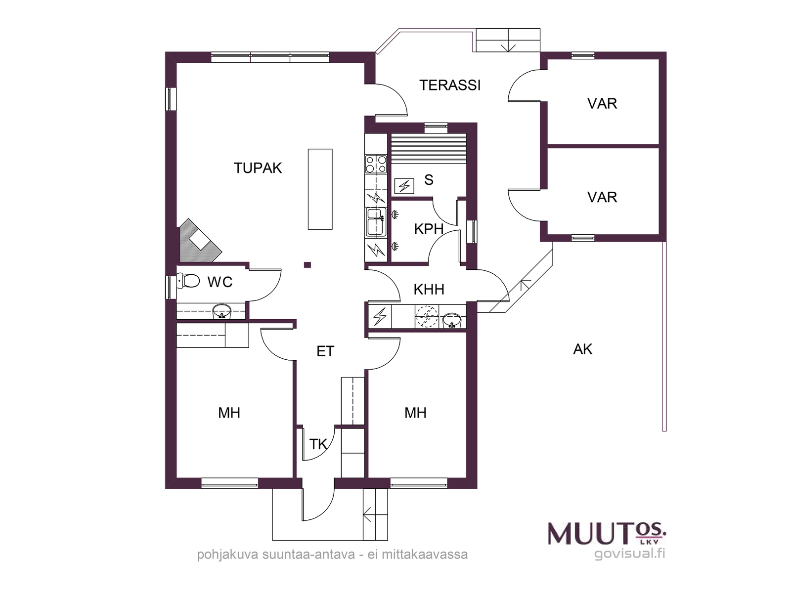 - Lattiakaivo, lattialämmitys, pesukoneliitäntä, ja kurapiste