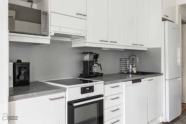 - Jääkaappipakastin, liesi, astianpesukone, erillisuuni, ja liesituuletin / hormi