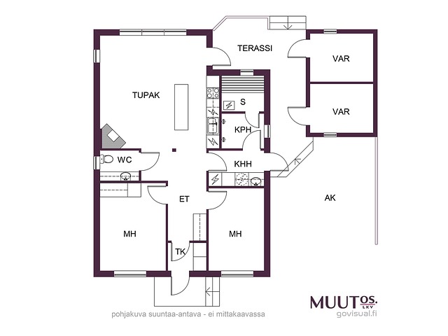 - Myytävä kohde on kaavan mukaan ohjeellisen tonttijaon aluetta. Joissakin tapauksissa tila-muotoinen tontti ei vastaa kaavan mukaisen tontin rajoja ja sen alueita. Kaavatontin pinta-ala ja tontin rajat voivat poiketa nykyisen tilan pinta-alasta ja rajoista. Mahdollisista tontin muodostamiskustannuksista vastaa ostaja.