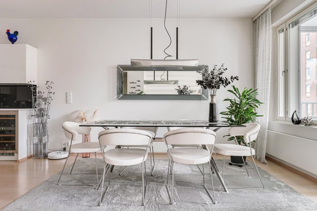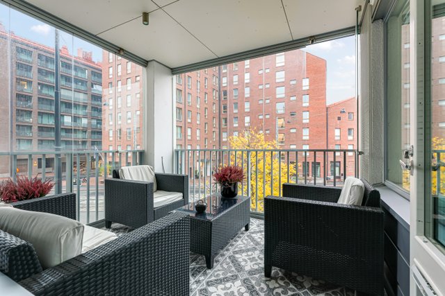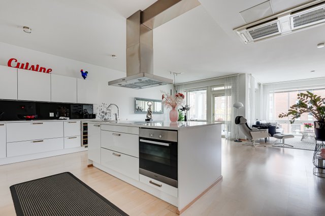 Huoneistokohtainen viilennys, koneellinen ilmanvaihto, korkea huonekorkeus, isot ikkunat, oma sauna, 2 x wc.