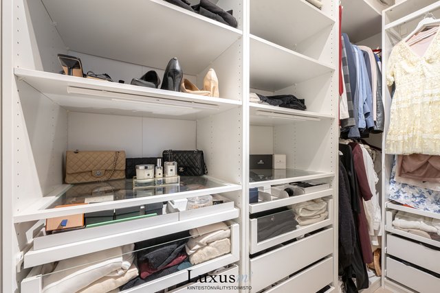 - Päämakuuhuoneessa vaatehuone, pienemmässä huoneessa kaapisto. Eteisessä kaapisto.