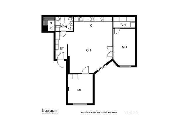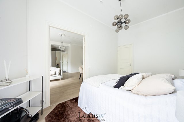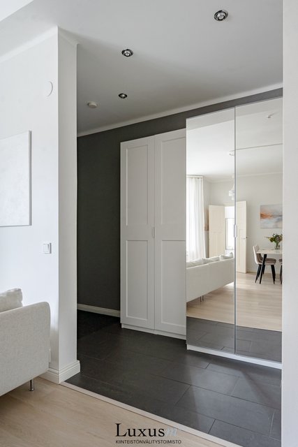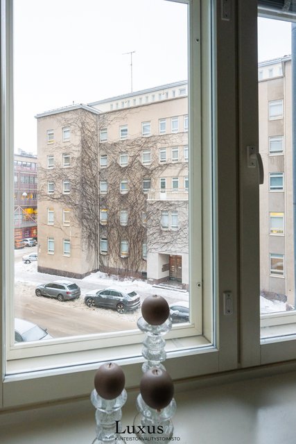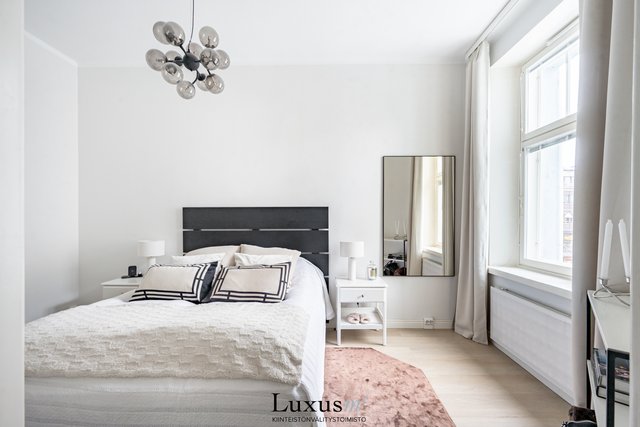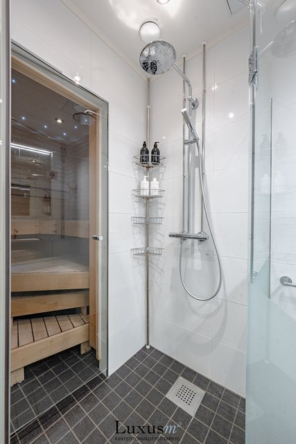 3. kerroksen huoneisto tarjoaa tehokkaat tilaratkaisut ilman hukkaneliöitä. Olohuone, ruokailutila ja avokeittiö muodostavat yhtenäisen avaran kokonaisuuden. Asunnon kaksi makuuhuonetta on sijoitettu eri puolille huoneistoa tarjoten niissä majoittuville omaa rauhaa. Kylpyhuoneen värimaailma on ajaton ja asunnon oma sauna tarjoaa rentouttavat löylyt tarjoten arjen luxusta.