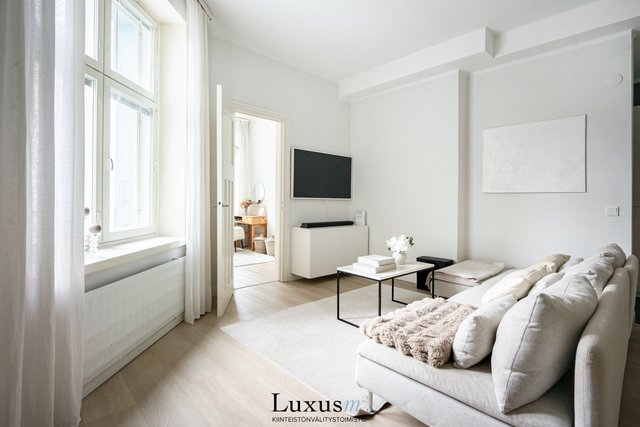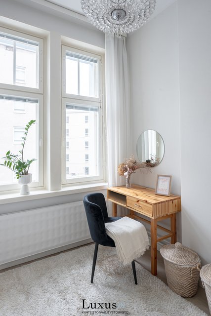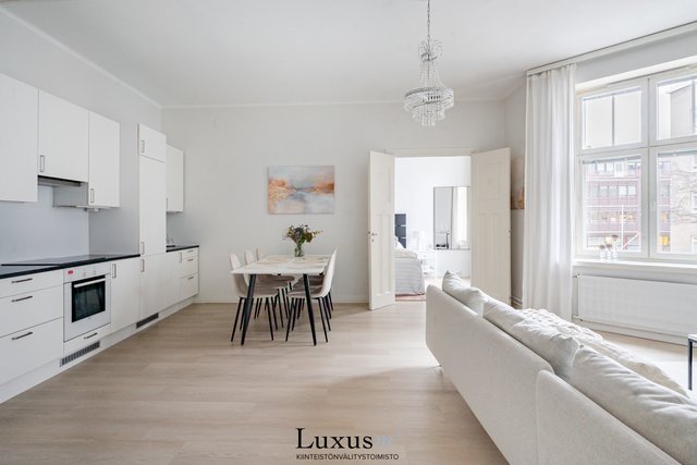 Tämä viehättävä ja valoisa kolmio sijaitsee historiallisessa rakennuksessa Helsingin Kampissa, Hietaniemenkadulla. Asunto tarjoaa tilavat ja korkeat huoneet, jotka luovat ilmavan ja avaran tunnelman.