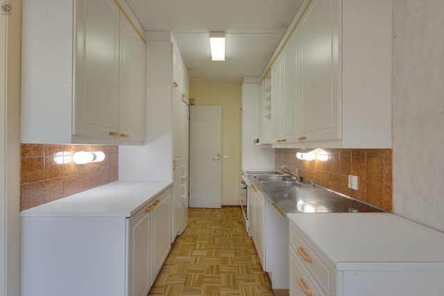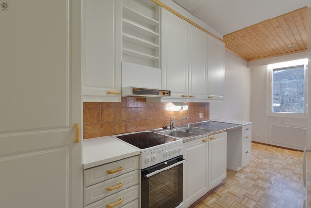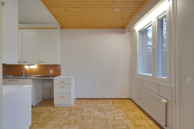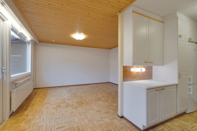 - Varustus: Keraaminen liesi, jääkaappipakastin, astianpesukoneliitos, välitila laatoitettu ja kaapistot. Lattia: parketti Seinät: maalattu levy/kaapistot Katto: maalattu levy