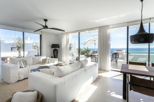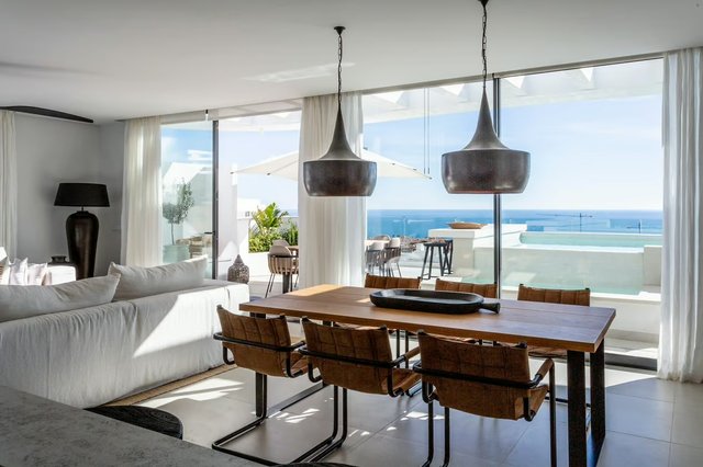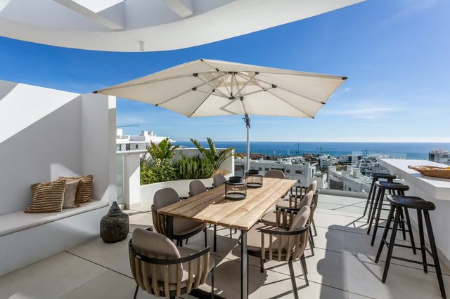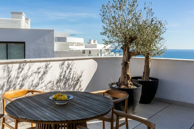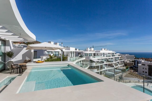 Welcome to this stunning penthouse in the exclusive Higueron West. This luxury and fully furnished penthouse offers you 5 stars hotel experience. With 3 bedrooms and 3 bathrooms, perfect for 3 couples or 6 people, different terraces overlooking the sea, its own jacuzzi and unbeatable location, just few steps from Carvajal train station which will take you to Malaga airport.