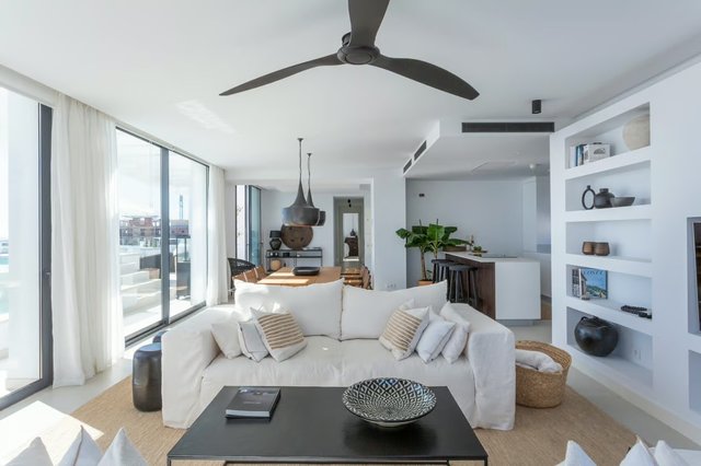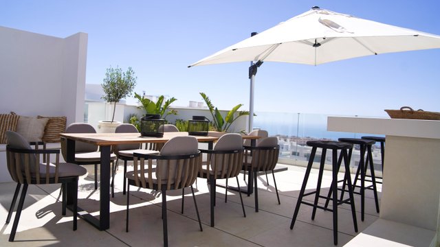 Large windows that can be opened giving an in out feeling. The large terrace is fully furnished with a dining table, sofas and two sun beds. It has a large Jacuzzi for you to enjoy your holidays without having to think about anything else. Top of the line stainless steel barbecue.
