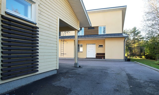 - Yläkerrassa kiva parvi / aulatila, josta näkymät suoraan alakerran olohuoneeseen. -Autotallissa kylmävesipiste, pesuallas ja nosto-ovi. -Autotallin, vaatehuoneiden, liukuovikaapin sekä kylmävaraston elfa-hyllyt kuuluvat kauppaan. -Keskuspölynimuri -Eteinen (peililiukuovikaappi)