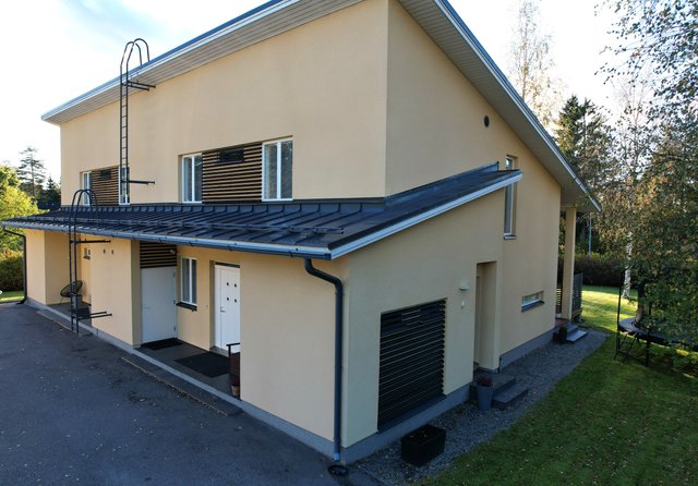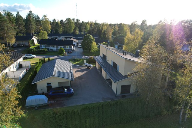 - Molempiin asuntoihin kuuluu omat autotallit sekä kaksi varastoa.