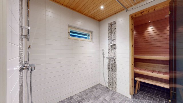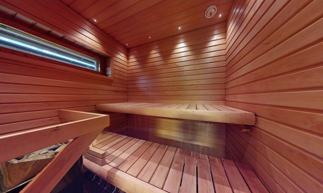 - Saunassa tervaleppä lauteet ja seinäpaneelit.
