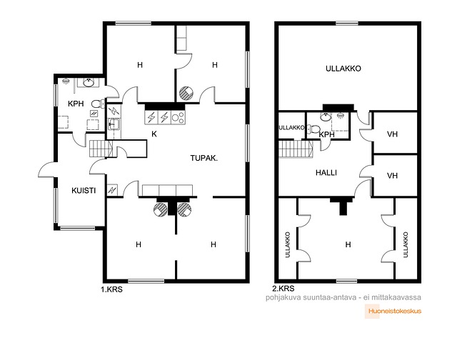 - Rakennuslupapiirustusten mukaan asuinrakennuksen huoneistoala alakerta 105m² ja yläkerta 43,5m², yhteensä 148,5m². Karkkilan kaupungin Epävirallisen Rakennus- ja huoneistorekisteriotteen mukaan asuinrakennuksen huoneistoala ja kerrosala160m². Talousrakennuksen kerrosala ja kokonaisala 56m². Ei tarkistusmitattu. Pinta-alat saattavat tämän ikäisissä kohteissa (rekisteröity ennen 1.1.1992) poiketa olennaisestikin asuinrakennusten nykyisten mittaustapojen ja standardien (SFS 5139) mukaan laskettavasta asuintilojen pinta-alasta. Pinta-ala voi siis olla edellä mainittua pienempi tai suurempi. Asuinpinta-alaa ei ole mitattu. Ostajan halutessa varmistua pinta-alasta, suosittelemme SFS-standardin 5139 mukaista pinta-alamittausta.