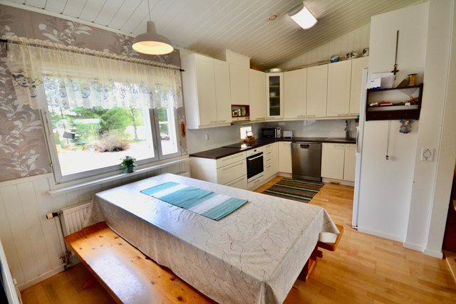 - Jääkaappi, uuni, liesi, liesituuletin, astianpesukone, ja leivinuuni.