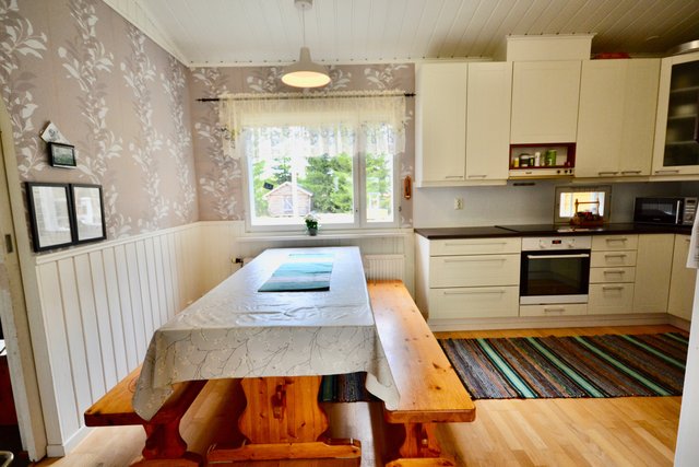 - Uusittu ja hieno keittiö. Puuhella ja leivinuuni.