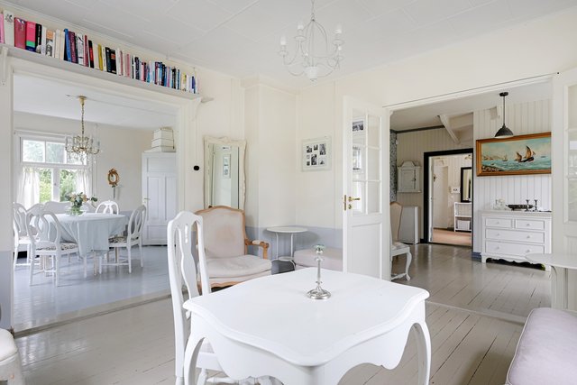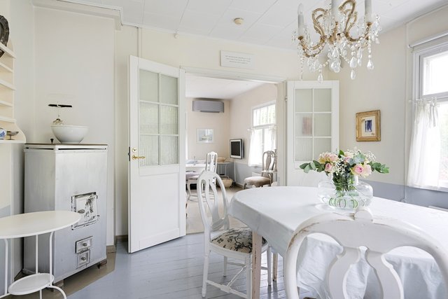 - Talon ruokasalissa ja alakerran sisääntulohallissa on kauniit käytössä olevat peltiuunit. Valoisassa eteiskuistissa on tilaa vaatteille. Talon ihastuttavaa henkeä luovat hallitilat sekä ala- että yläkerrassa.