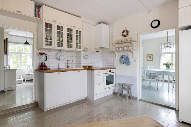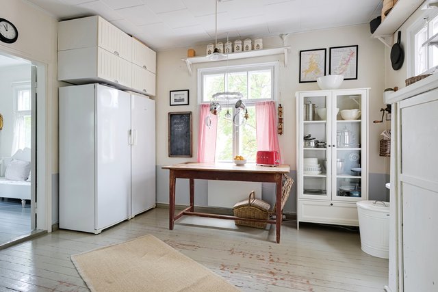 - Tunnelmallinen, maalaishenkinen keittiö, jossa ikkunoita kahdella seinällä. Vaaleat keittiökaapistot. Kodinkoneet: astianpesukone (uusittu v. 2023), uuni, keraaminen liesi, liesituuletin aktiivihiilisuodattimella (uusittu v.2025), jääkaappi ja pakastin.