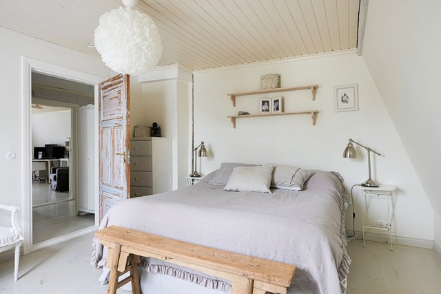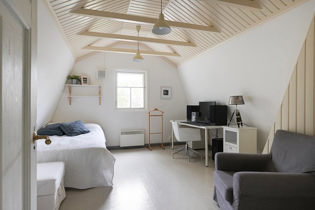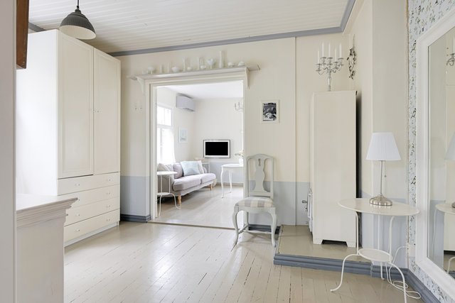 - Kolme avaraa makuuhuonetta, joissa lankkulattiat ja perinteinen paneelikatto.