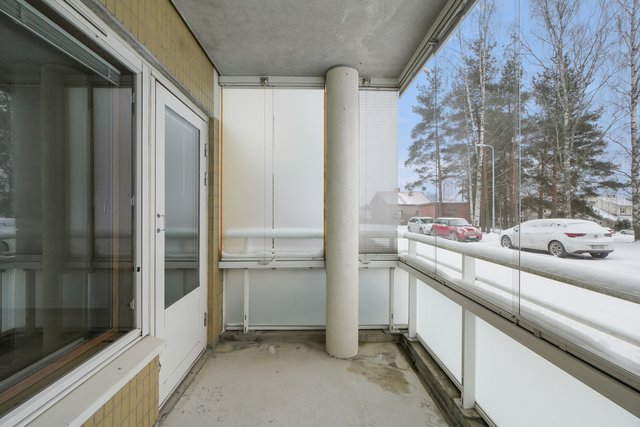 - Keittiön yhteydessä olohuone, josta kulku lasitetulle parvekkeelle.