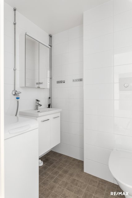 - WC-istuin, suihku, suihkuseinä, pesukoneliitäntä, lattialämmitys, peilikaappi, pesuallas, allaskaappi, bidee-suihku, ja pyyhekuivain
