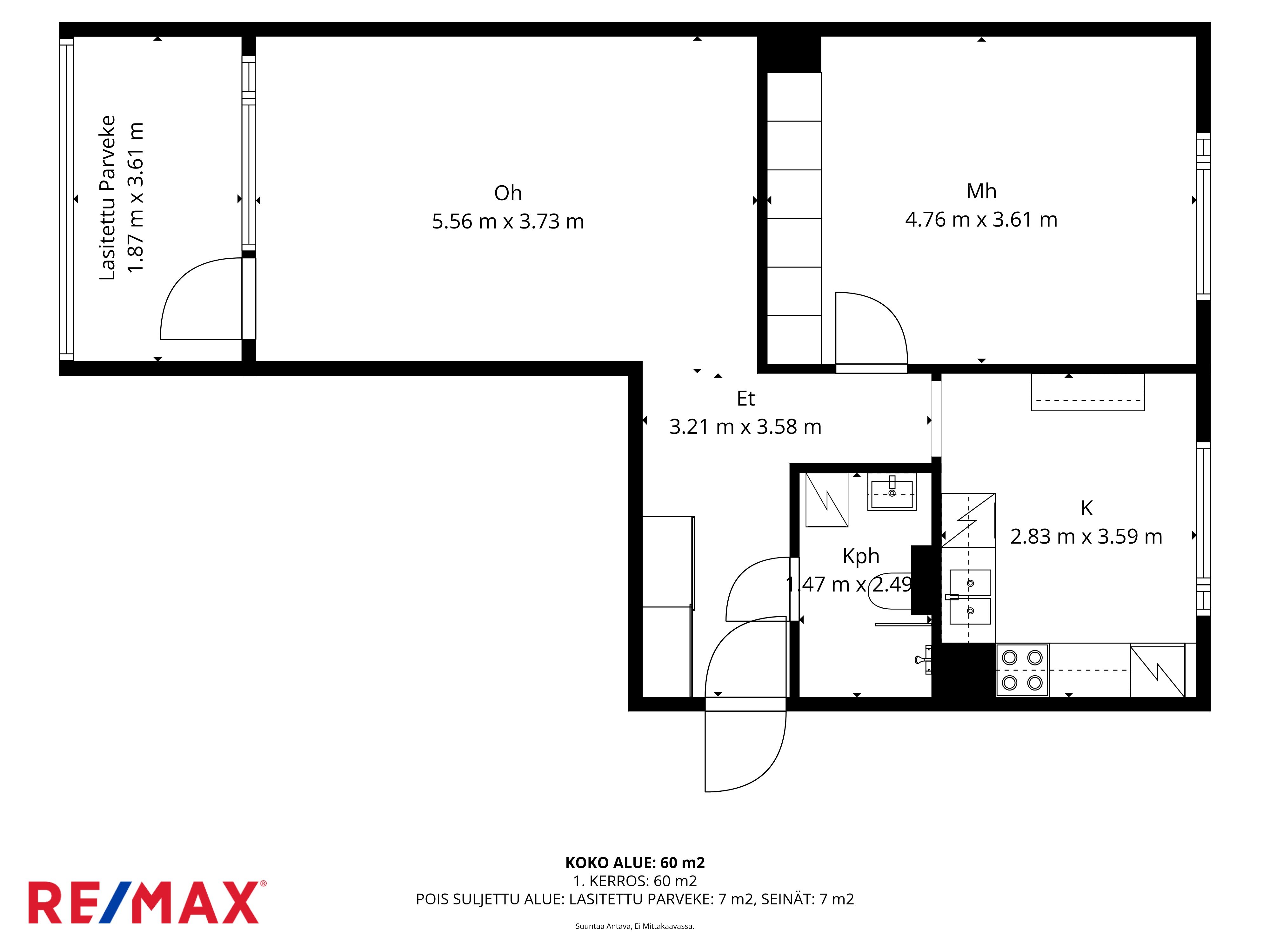 - Yhtiöjärjestyksen mukainen, Isännöitsijäntodistuksen mukainen, (Pinta-ala ei ole tarkistusmitattu ja todellinen pinta-ala voi olla suurempi tai pienempi, kuin ilmoitettu)