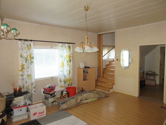 Tästä kohde tilaa tarvitsevalle "remonttireiskalle". Yläkerrassa tilavat makuuhuoneet ja kohde soveltuu myös perheen kodiksi.
