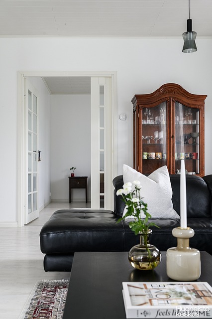 Olohuone on kutsuva ja helposti kalustettavissa. Se on oma rauhallinen tilansa, vaikkakin keittiön ja ruokailutilan läheisyydessä. Kaunis takka tuo lämpöä ja tunnelmallisuutta pimeneviin syysiltoihin.