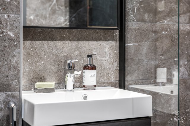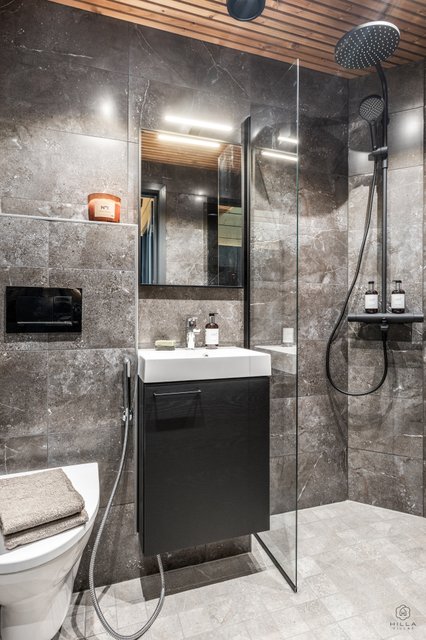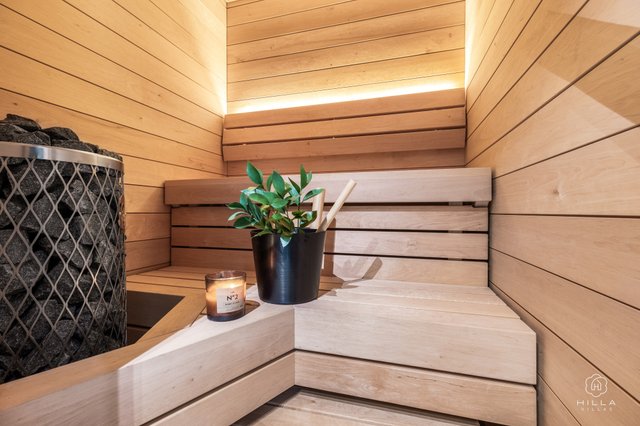 Huoneiston laattalattiat ja hirsipaneeliseinät luovat lämpimän ja tyylikkään tunnelman. Täysin varusteltu keittiö sisältää induktiolieden ja integroidun astianpesukoneen, ja oma sauna sekä parveke kruunaavat kokonaisuuden – täydellinen paikka rentoutua päivän aktiviteettien jälkeen.