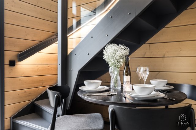 The apartment's location is a holidaymaker's dream: the South Point ski lift is just a stone's throw away, the ski bus stop is 300 meters away, and the ski trail is almost directly outside the front door. The center of Levi is easily accessible and Kittilä Airport is only ten kilometers away, making it quick and easy to get around.