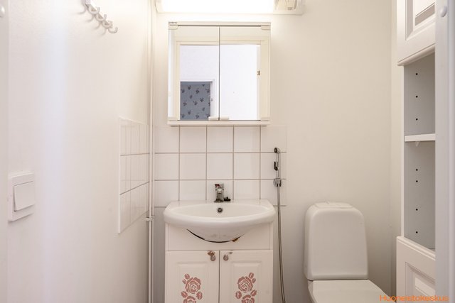 - wc:n seinät maalattu, lavuaarin yläpuolella osin laatoitusta
