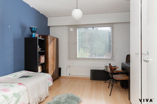 Yläkerrasta löytyvät kodin makuuhuoneet, jotka tarjoavat omaa rauhaa ja yksityisyyttä. Tämä käytännöllinen pohjaratkaisu tekee kodista erityisen toimivan arjen kiireissä: oleskelu ja rauhoittuminen ovat luontevasti omissa kerroksissaan.