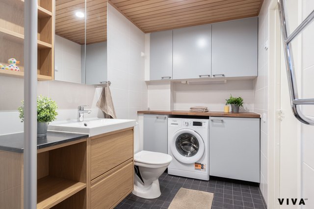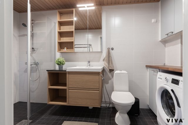 - Suihku, wc-istuin, suihkuseinä, ja pesukoneliitäntä