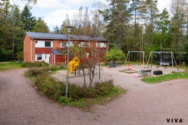 Myös ympäristö tukee huolettoman asumisen tunnetta. Alue on turvallinen ja lapsiperheiden suosima, ja kaikki tarvittava on kävelyetäisyydellä: alakoulu sijaitsee noin 400 metrin päässä ja lähimpään päiväkotiin on matkaa vain noin 750 metriä. Aktiivista elämäntapaa tukevat ulkoilumaastot ja uimahalli löytyvät lähietäisyydeltä, ja Kirkkonummen keskustan monipuoliset palvelut – kaupat, ravintolat, kirjasto ja juna-asema – ovat alle kahden kilometrin päässä.