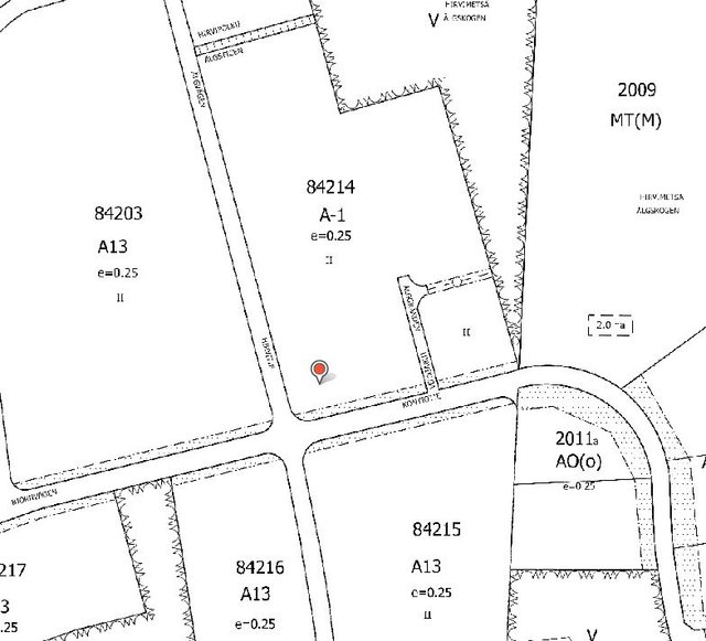 Kaavatiedot: Kiinteistö on tila korttelissa 84214. Kaavamerkinnät A-1, e=0,25, II. Alueella on asemakaava (vahvistettu 4.10.1989).