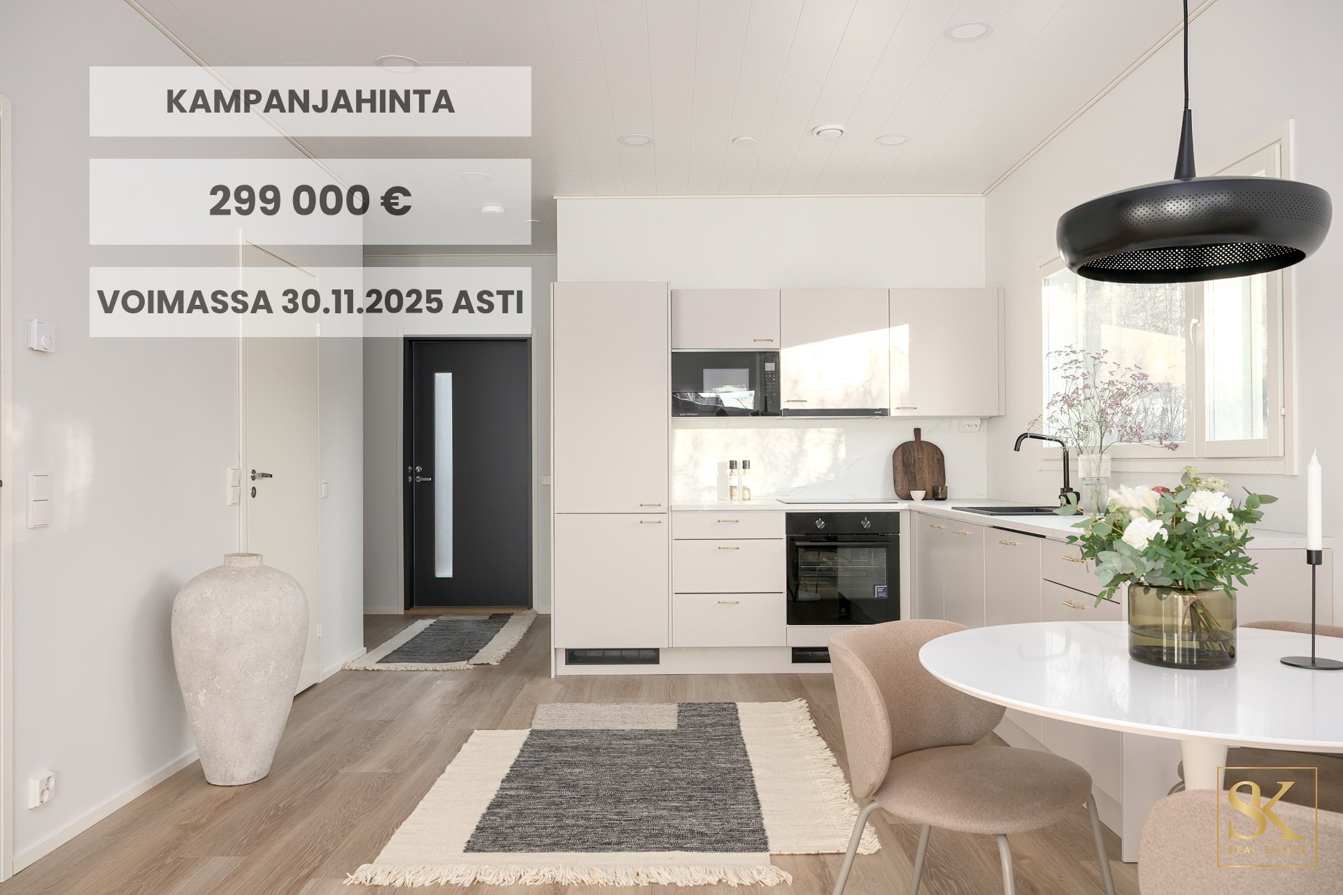 Halutessasi tonttiosuus on mahdollista lunastaa, jolloin erillistalon myyntihinnaksi muodostuu noin 374 000 euroa. Tarkemmat tiedot kohteen välittäjiltä.