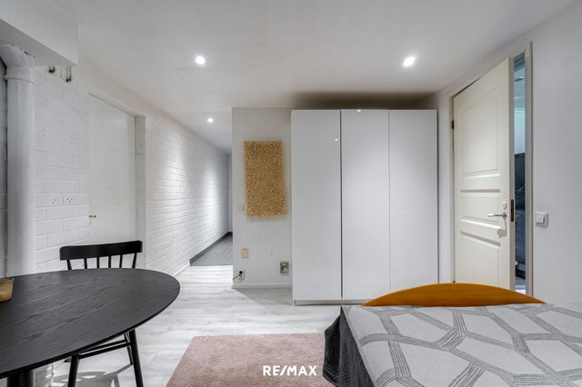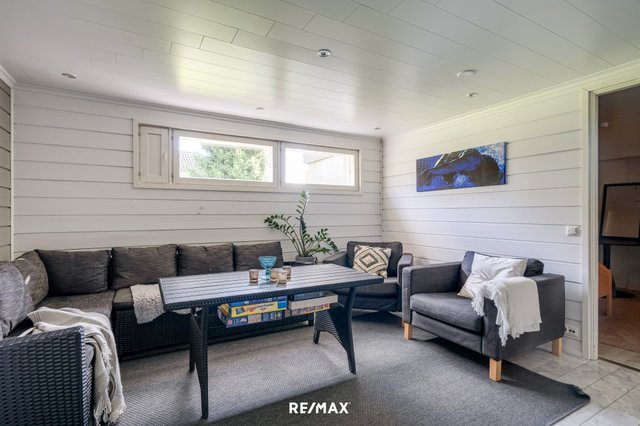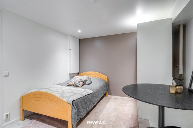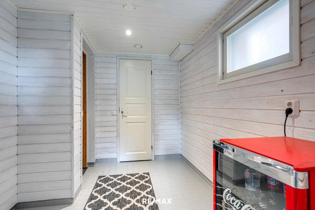 Kellarikerroksesta löytyy myös ikkunaton suurehko huone, joka toimisi hienosti vaikka vierasmajoitukseen, varastotilaksi, työtilaksi, kuntosaliksi... Huoneen yhteydessä on myös erillinen tila kodinhoitoon ja vaatehuoltoon. Huoneesta on käynti myös autotalliin.
