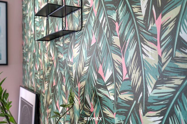 - Maali ja kaappien välitilassa tapettia ja lasi päällä