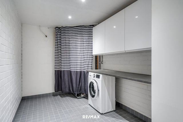 - Erillinen kodinhoitohuonetila on alakerrassa. Siellä on reilusti kaapistoa ja tasoa vaatehuoltoon sekä lämminvesivaraaja ja keskuspölynimurin säiliö sijaitsee siellä.