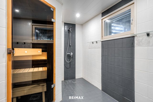 - Pesukoneliitäntä, lattialämmitys (sähköinen), pöytätaso, pyykkikaapit, ja lattiakaivo