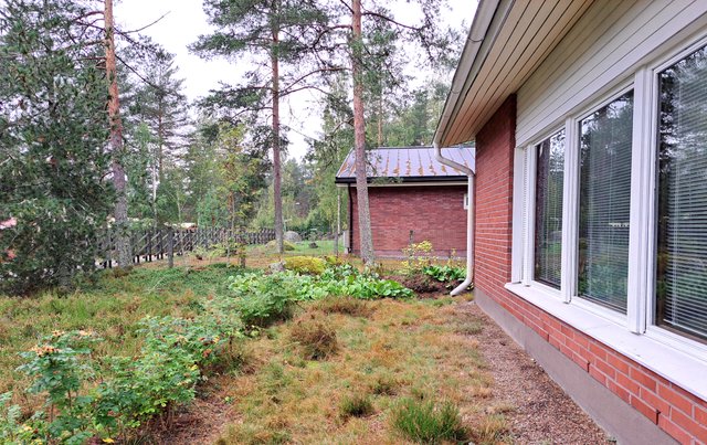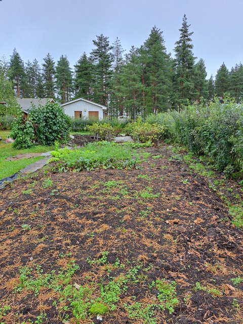 - Helppohoitoinen kuntta piha, talon päädyssä perunamaa, kasvimaa, marjapensaita