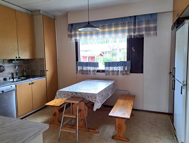 Iso, vankka puurunkoinen, tiilivuorattu talo remonttitaitoiselle Jaalan Hokkarinharjulla. Sähkö /puu lämmitys, olohuoneessa varaava takka, ilmalämpöpumppu 2024, myös aurinkopaneelit 16 kpl asennettu katolle 2025. Kolme makuuhuonetta, 2 wc, talon yhteydessä autotalli ja lämmin varasto, terassi ja leikkimökki takapihalla. Kunnallistekniikka. Helppohoitoinen piha ja multasormelle löytyy kasvi/perunamaa. Ei lain ed. e-tod.